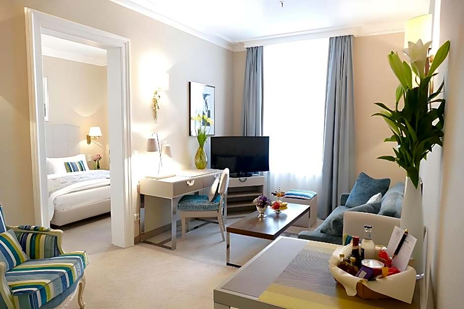 These modern and elegant apartments face the quiet courtyard. They feature separate living and sleeping areas, a kitchenette, double beds, lots of storage space and adjustable air conditioning. An electric kettle is provided.